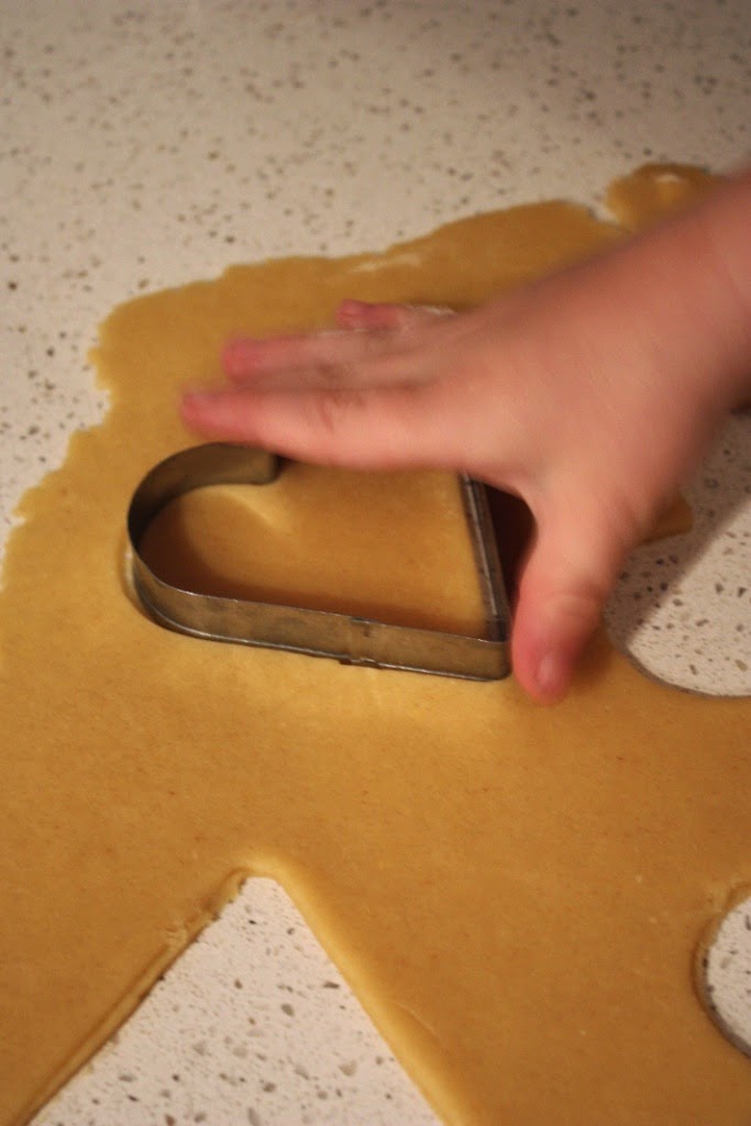 Miniprinsen (3) har blitt en racer på å kjevle ut og stikke ut kakefigurer.